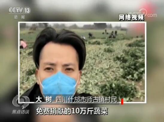 這是什邡市師古鎮的一個農村網紅,網名叫大樹哥。疫情發生以后,他也想為武漢做點什么。他說,自己沒什么錢,但是地里有菜。