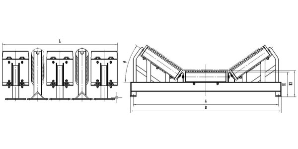型號適用 帶寬H1H2LABθ托輥直徑緩沖條數托輥組數